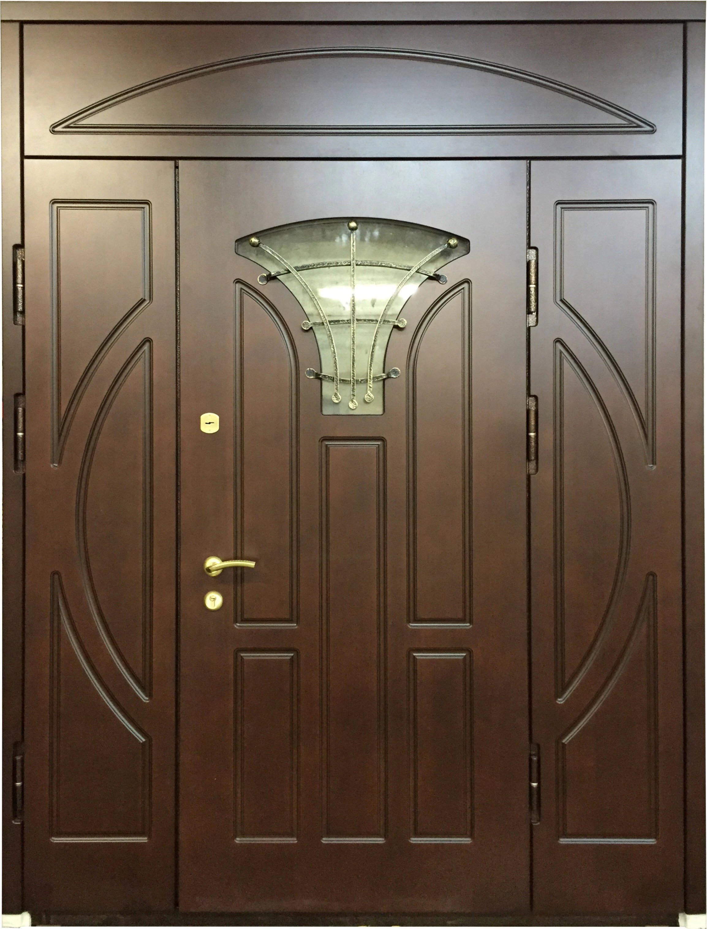 Поговорим об отделке. Вариантов декора дверей много. В большинстве случаев, для отделки элитных дверей используется массив натурального дерева или натуральный шпон с фрезеровкой. Цвет двери так же делается по желанию заказчика. Очень красиво и представительно выглядят двери с ковкой и стеклом.