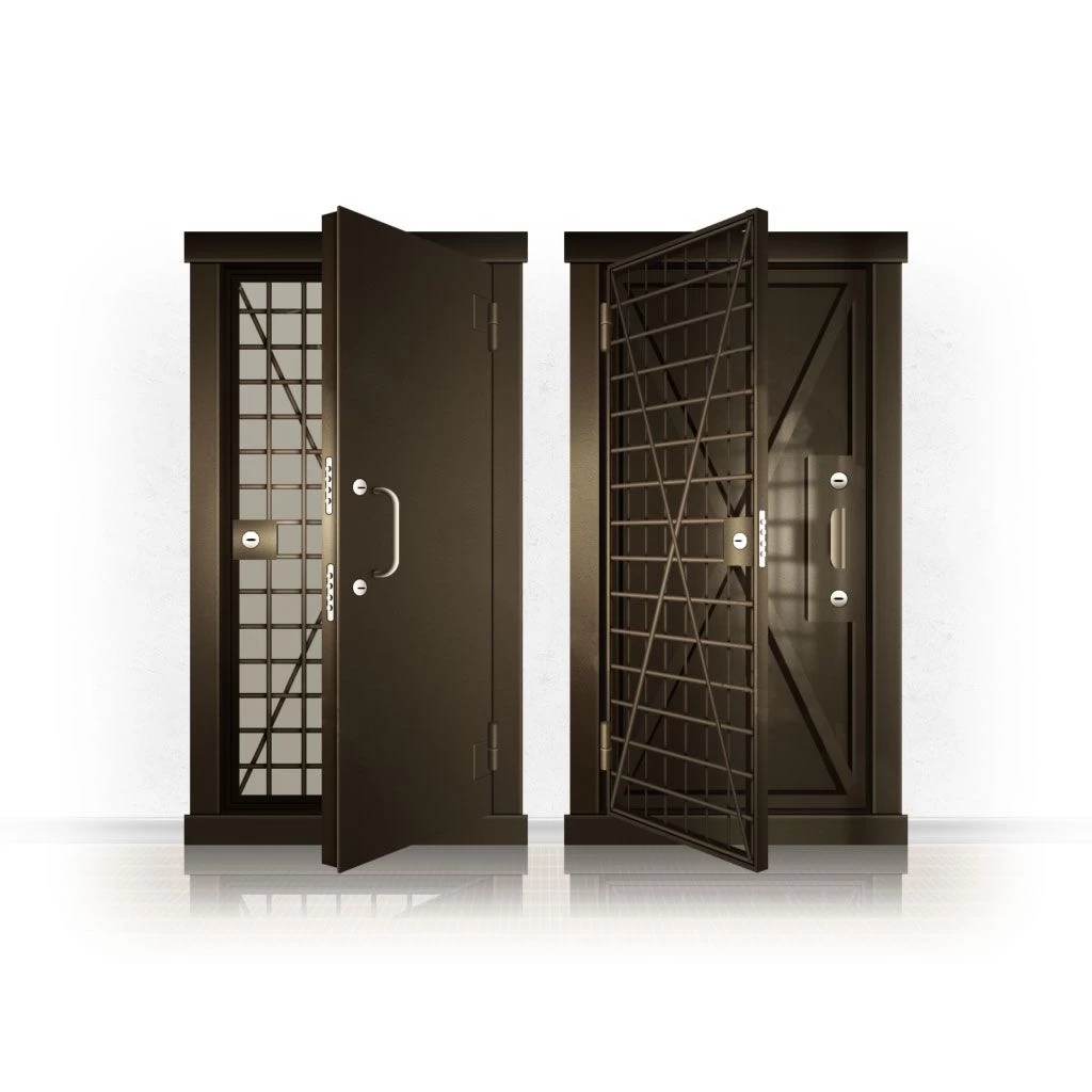 Металлические двери КХО и КХН представляют собой входные блоки, обладающие высоким уровнем взломостойкости и состоят из трех основных элементов: усиленного каркаса, сплошного металлического полотна и решетчатой двери. Дверной блок изготавливается из стального уголка 100*100 мм. Места крепления блока к стене цементируются и закрываются стальными наличниками шириной 40 мм. Крепеж заходит вглубь стены на 80 мм. В конструкции внешней створки монтируются ребра жесткости, для обшивки используется сталь толщиной не менее 3 мм. Внутренняя решетка изготавливается из прутка диаметром 16 мм. Размер ячеек решетки должен составлять не более 15 на 15 см. В точках пересечения прутья надежно приваривают друг к другу. В КХО и КХН необходимо поддерживать определенную температуру и влажность. Для этого внутреннее пространство глухой двери заполняется теплоизоляционным материалом, а по периметру двери приклеивается уплотнитель. Такие двери оборудуются замками с повышенным уровнем взломостойкости. Специализированные двери КХО и КХН в Рузе могут быть оснащены сигнализацией, в конструкции могут быть проушины для навесного замка и элементами для опечатывания. Если идет речь о двери в комнату хранения оружия, в створке оборудуется окно для выдачи оружия и спец. средств, которое накрывается стальной дверцей.