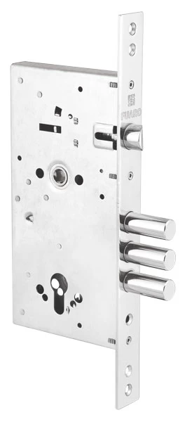 Корпус врезного цилиндрового замка Fuaro V25/C-60.85.3R16 с тремя ригелями и защелкой предназначен для установки во входные металлические двери. Стальной оцинкованный корпус. Универсальная реверсивная защелка, подходит для левых и правых дверей. Отверстия под стяжные винты. Бэксет- 60мм. Выход ригелей- 36мм. Межосевое расстояние -85 мм. Открывание-3 полуоборота. Диаметр ригелей -16мм. В комплект входит крепежная фурнитура. Распространённый тип-размер, не требуется переналадка оборудования для перехода на замки серии V25. Защёлка полностью убирается не только от ручки, но и от ключа цилиндрового механизма.