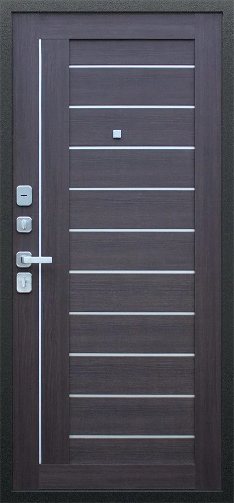 Надежная входная Дверь Соло орех рифленый премиум класса по цене 31 200 руб. Большая толщина стали защитит от проникновения в ваш дом, квартиру или коттедж. Используется очень качественная фурнитура: замки, цилиндры, ручки, защелки. Покрытие и отделка двери изготовлено под внимательным контролем производителя. Дверь имеет долгий срок службы и гарантию.