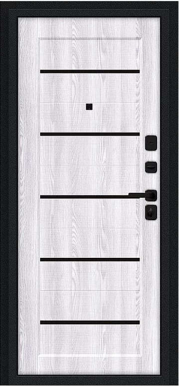 Дверь Браво Борн/SBlack Букле черное/Riviera Ice среднего ценового диапазона. Стоит дверь 27 000 руб. и это отличное соотношение цены и качества. Модель подойдет для установки, например в новостройку. Прослужит долго и будет надежной защитой вашей квартиры или дома.