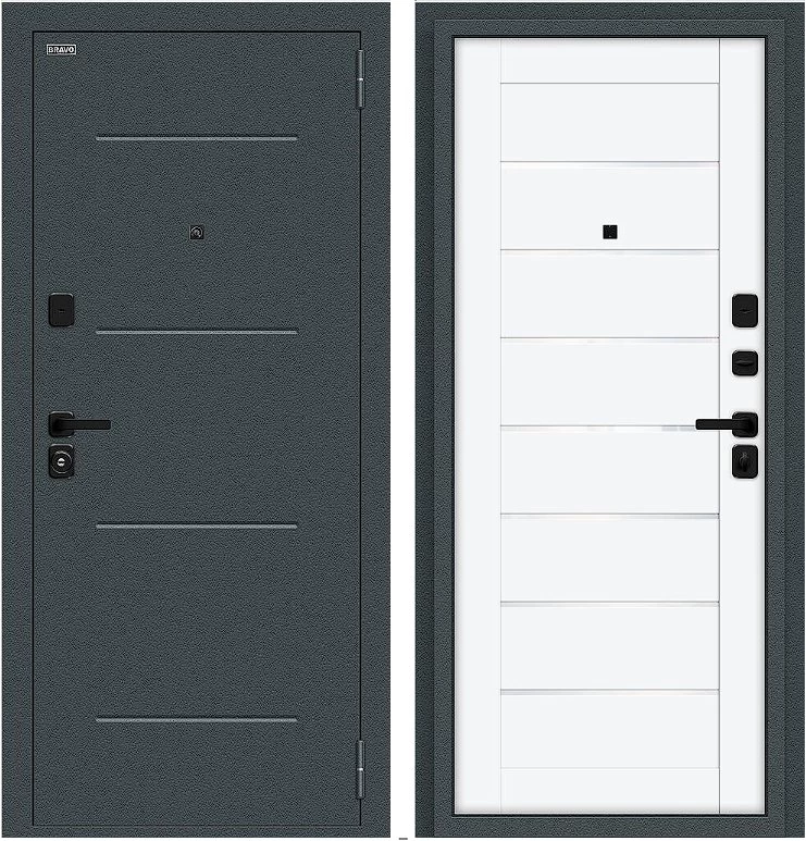 Надежная входная Дверь Браво Техно/SBlack Старк антрацит/White Silk премиум класса по цене 31 000 руб. Большая толщина стали защитит от проникновения в ваш дом, квартиру или коттедж. Используется очень качественная фурнитура: замки, цилиндры, ручки, защелки. Покрытие и отделка двери изготовлено под внимательным контролем производителя. Дверь имеет долгий срок службы и гарантию.