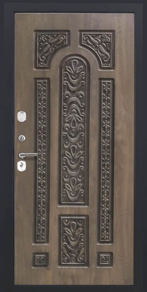Дизайнерская входная Входная дверь ДвериПРО Аура Д-19 (16мм, Грецкий орех + черная патина винорит) DPRO195588 класса Люкс с несколькими листами стали, звукоизоляцией и теплоизоляцией. Утепленный короб и полотно защитят от сквозняков и шумов. Модель не только надежная, комфортная, защищенная и высочайшего качества, но и очень красивая! Будет отлично сочетаться с интерьером дома, квартиры или офиса. Сейчас действует выгодное предложение по цене: 97 650 руб.