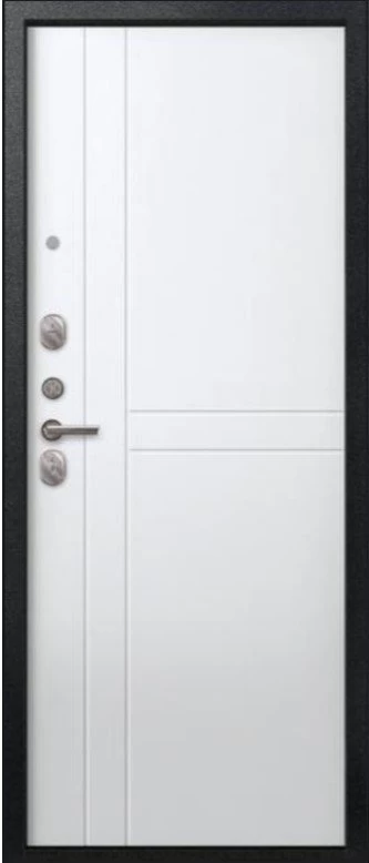Надежная входная Дверь V-06 Черный муар - Белый премиум класса по цене 34 350 руб. Большая толщина стали защитит от проникновения в ваш дом, квартиру или коттедж. Используется очень качественная фурнитура: замки, цилиндры, ручки, защелки. Покрытие и отделка двери изготовлено под внимательным контролем производителя. Дверь имеет долгий срок службы и гарантию.